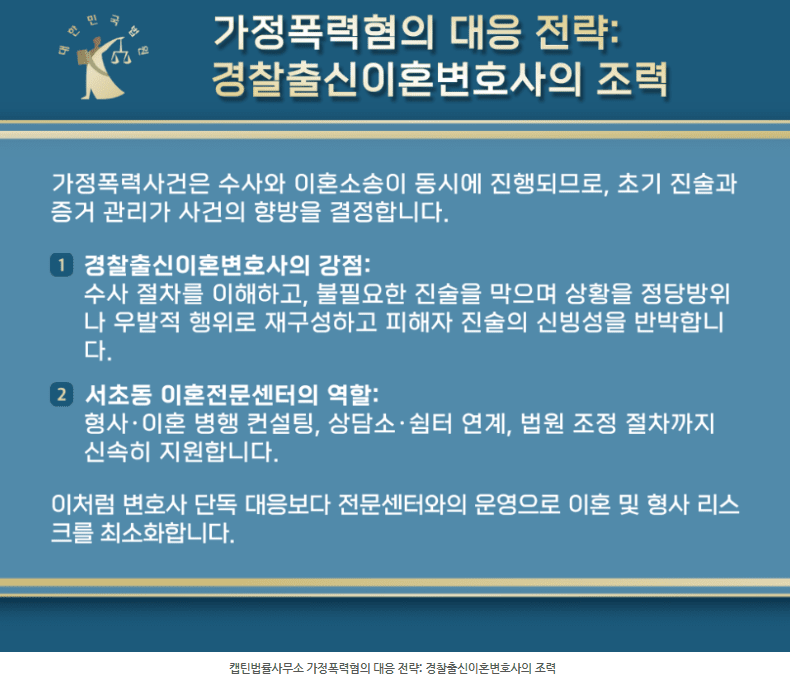 3. 캡틴법률사무소 가정폭력혐의 대응 전략: 경찰출신이혼변호사의 조력