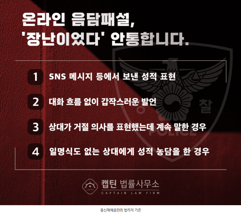 오늘은 '음담패설이 왜 통매음으로 처벌되는지'에 대해서 캡틴법률사무소 '통매음 무혐의 판결 성공사례'를 중심으로 명확히 설명드리겠습니다.