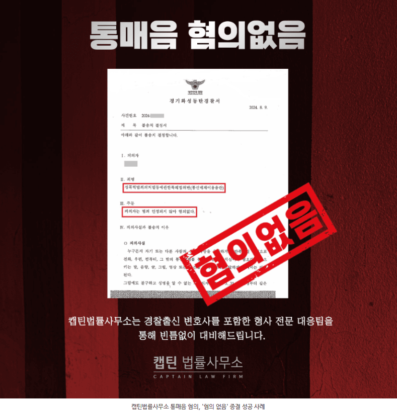 3. 캡틴법률사무소 - 통매음 혐의, '혐의 없음' 종결 성공 사례