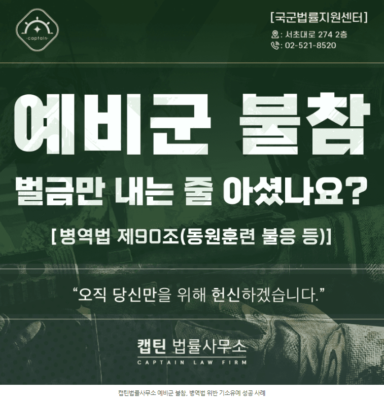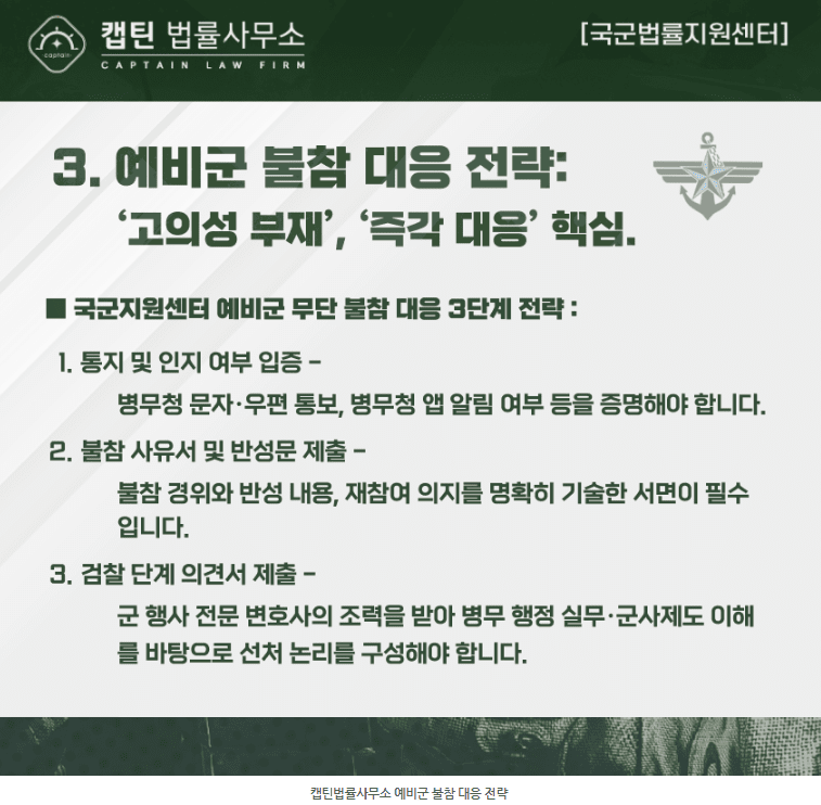 ■ 캡틴법률사무소 국군지원센터 예비군 무단 불참 대응 3단계 전략 :