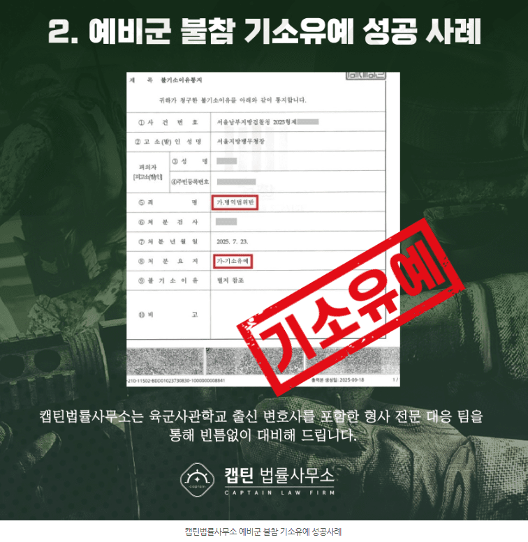 2. 캡틴법률사무소 - 예비군 불참 사실은 인정했지만, 기소유예로 전과 없이 마무리 성공 사례