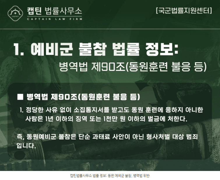 1. 법률 정보: 동원 예비군 불참, 병역법 위반 명확한 ‘형사 범죄’