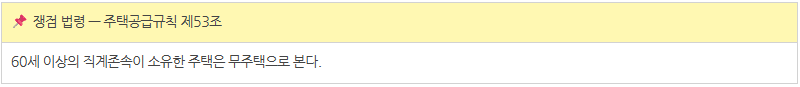 주택공급규칙에는 “직계존속 중 60세 이상인 자가 소유한 주택은 무주택으로 간주”라고만 규정되어 있습니다.