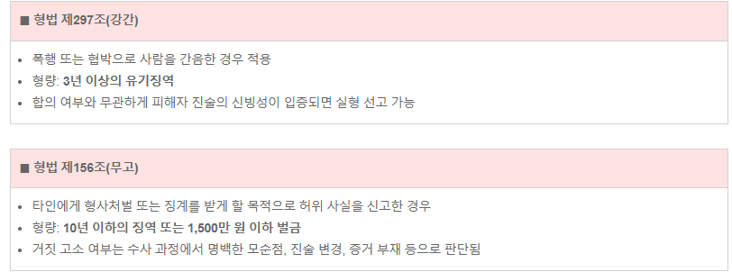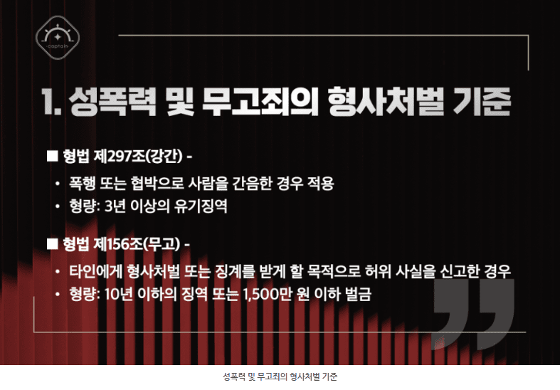 1. 성폭력 및 무고죄의 형사처벌 기준