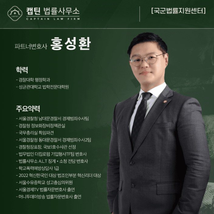 안녕하세요. 캡틴법률사무소 국군법률지원센터입니다.