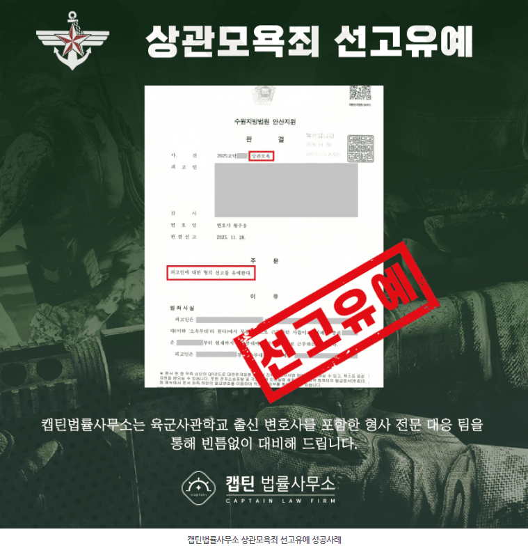 2. 캡틴법률사무소 상관모욕죄 선고유예 성공사례