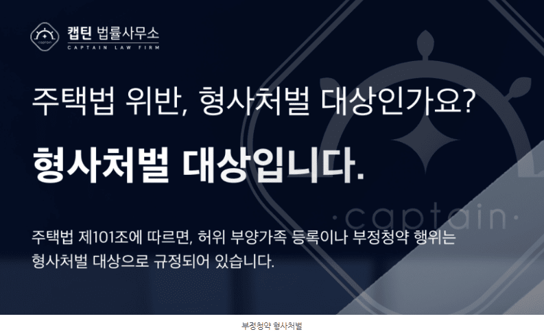 안녕하세요. 형사전문변호사로 구성된 캡틴법률사무소 주택법위반대응팀입니다.