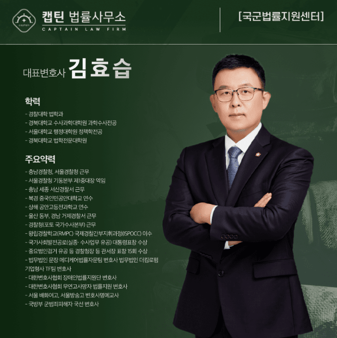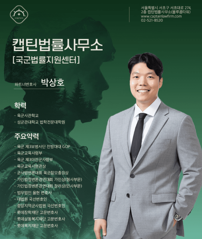 안녕하세요. 캡틴법률사무소 국군법률지원센터입니다.
