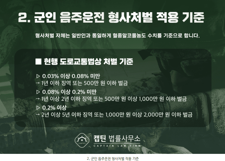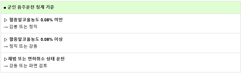2. 군인 음주운전 형사처벌 적용 기준