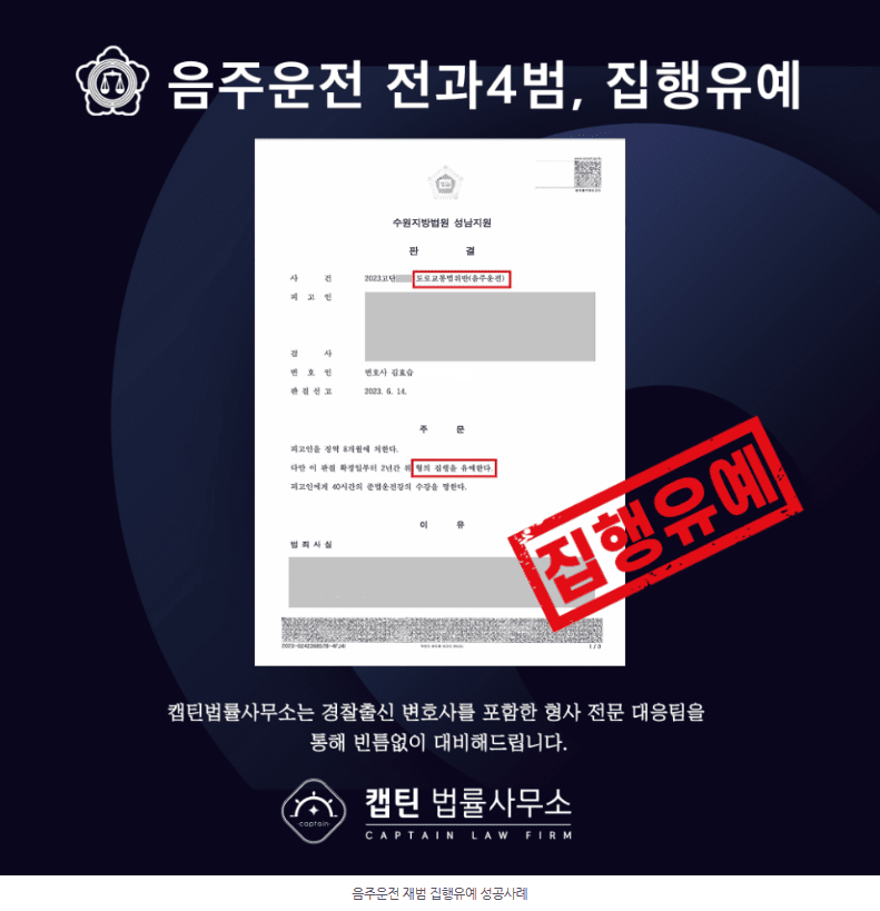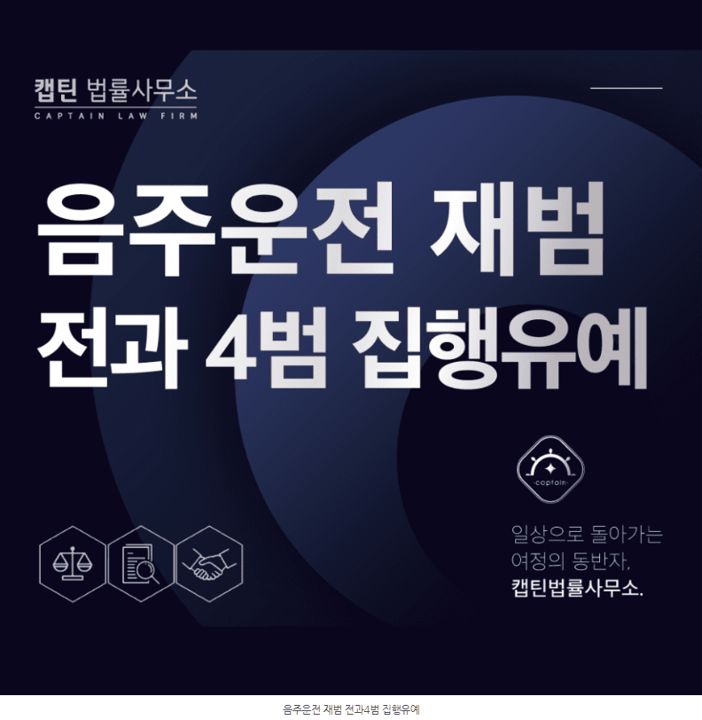 [법인소식] 음주운전 재범 4범 선처 사례, 서초음주운전변호사가 만든 집행유예 결과