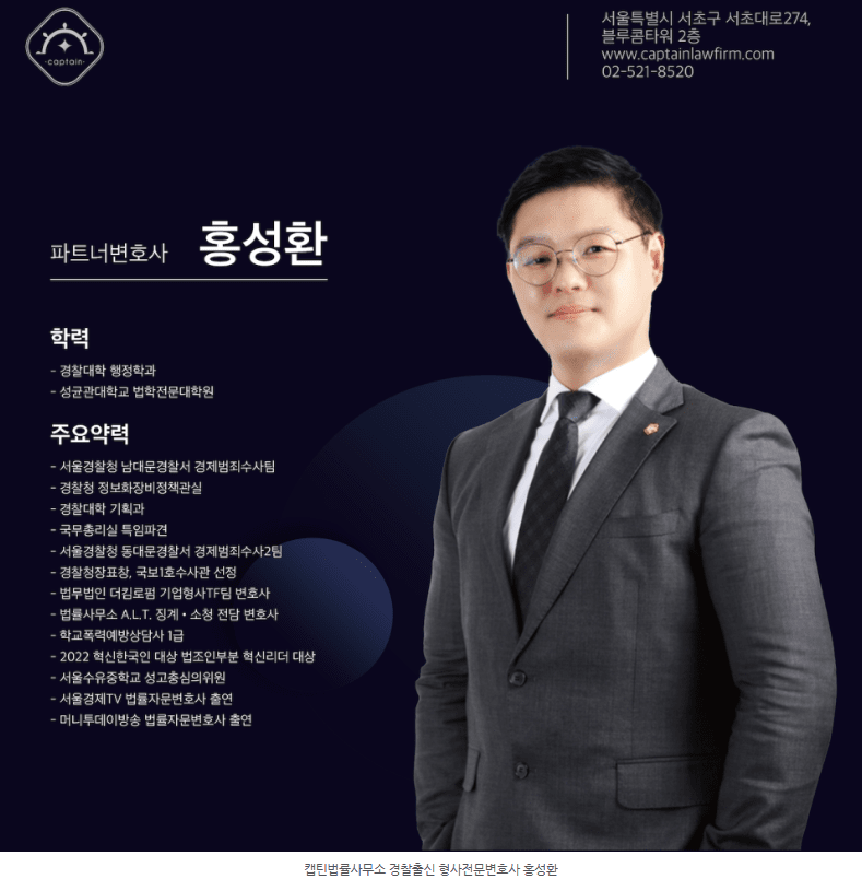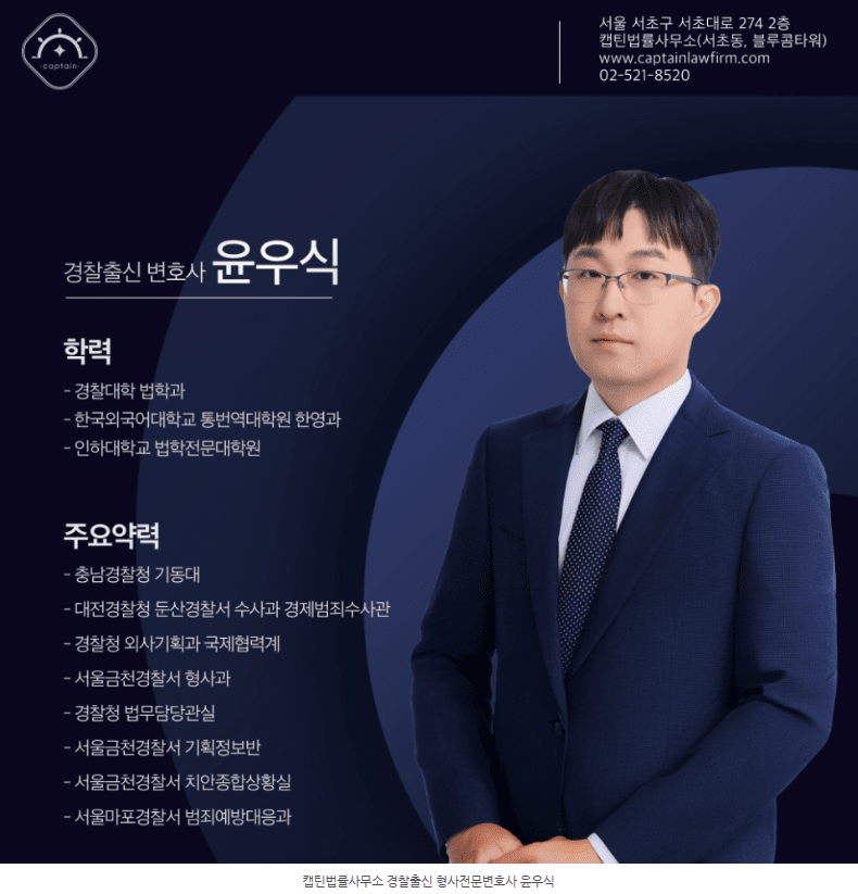 안녕하세요. 서초동 경찰출신 형사전문변호사 캡틴법률사무소입니다.