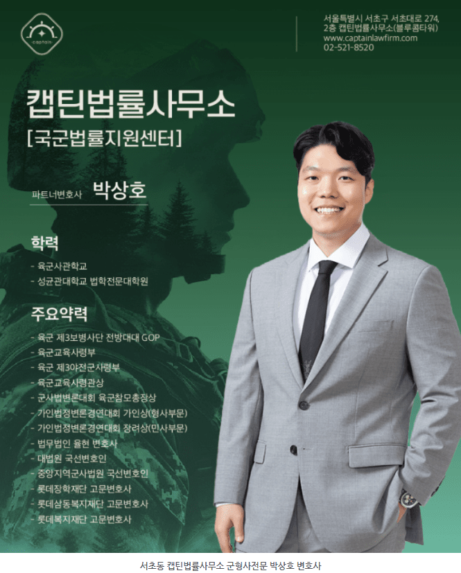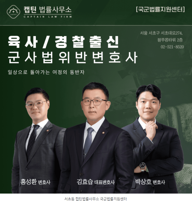 안녕하세요. 캡틴법률사무소 국군법률지원센터입니다.