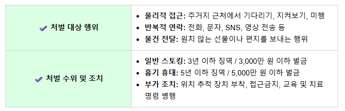 1. 스토킹처벌법, 처벌 기준과 수위