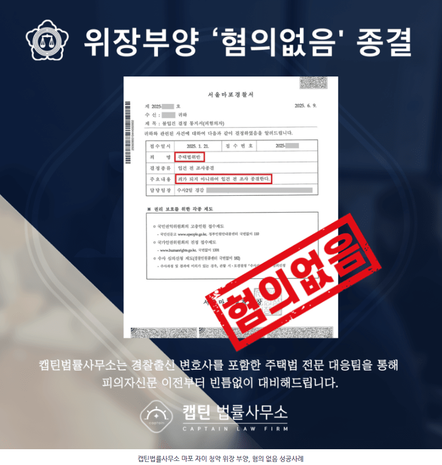 3. 캡틴법률사무소 마포 자이 청약 위장 부양, 혐의 없음 성공사례