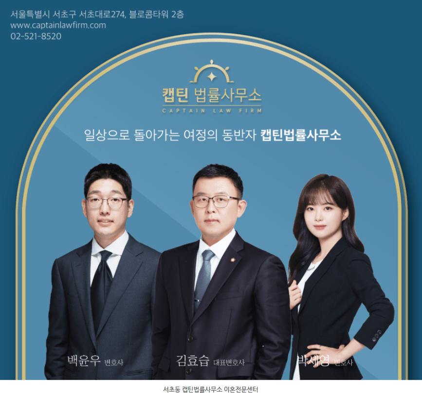 안녕하십니까? 캡틴법률사무소 이혼전문센터입니다.