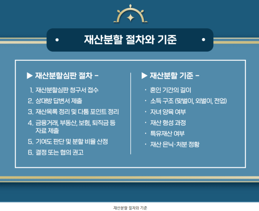 - 재산분할은 명의가 아니라 기여도 기준으로 판단됨 - 전업주부, 육아, 내조, 가사노동 모두 법적 기여도로 인정 |