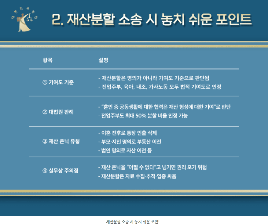 2. 재산분할 소송 시 놓치기 쉬운 포인트