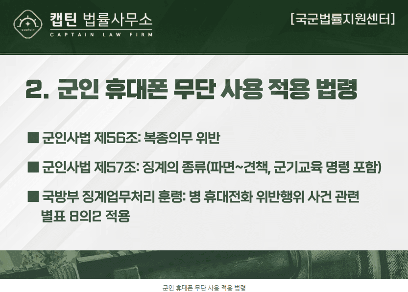 [법인소식] 군 복무 중 투폰 적발, 어떤 징계 받나요? 관련 법령과 양정 기준