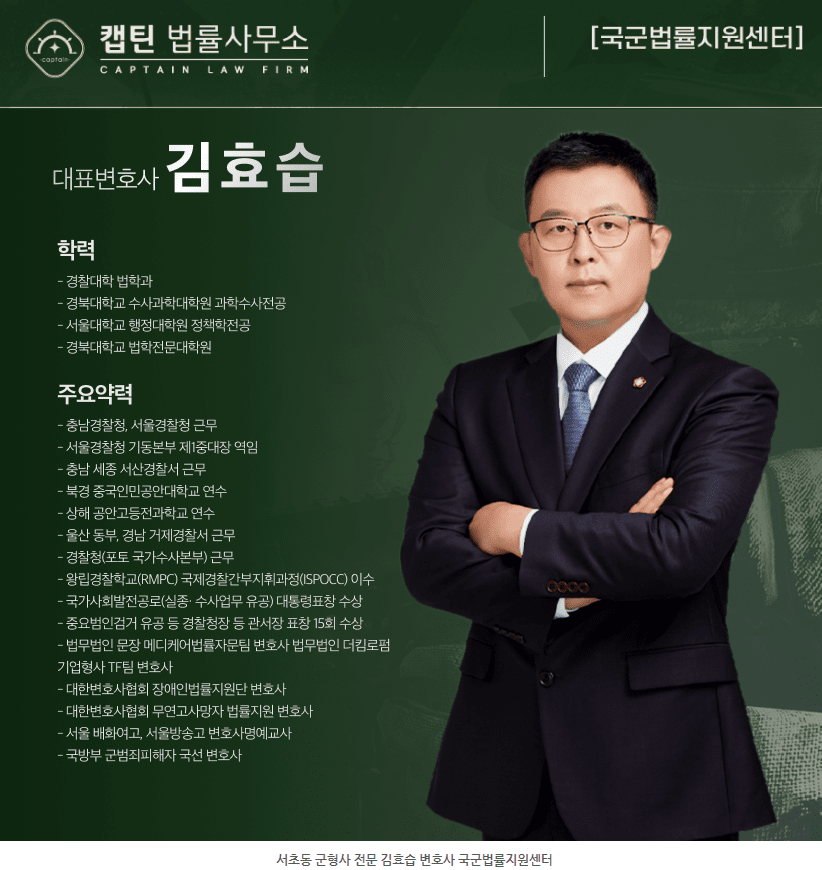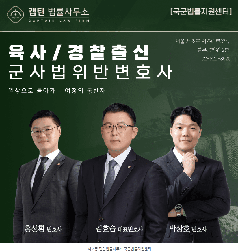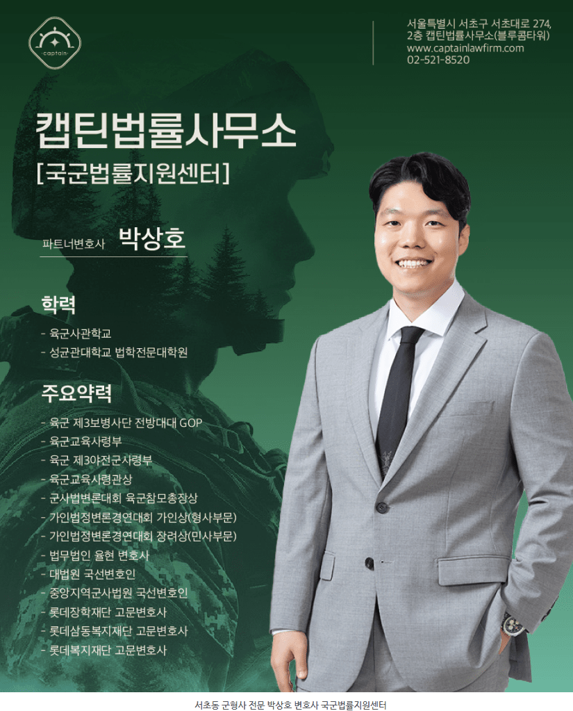 안녕하세요. 캡틴법률사무소 국군법률지원센터 박상호 변호사입니다.