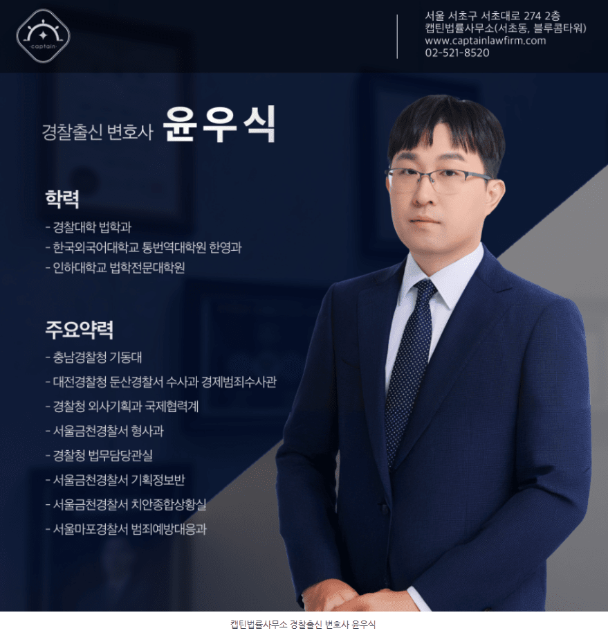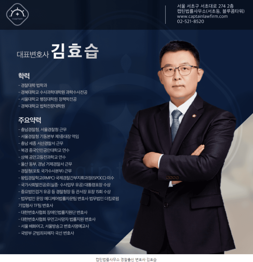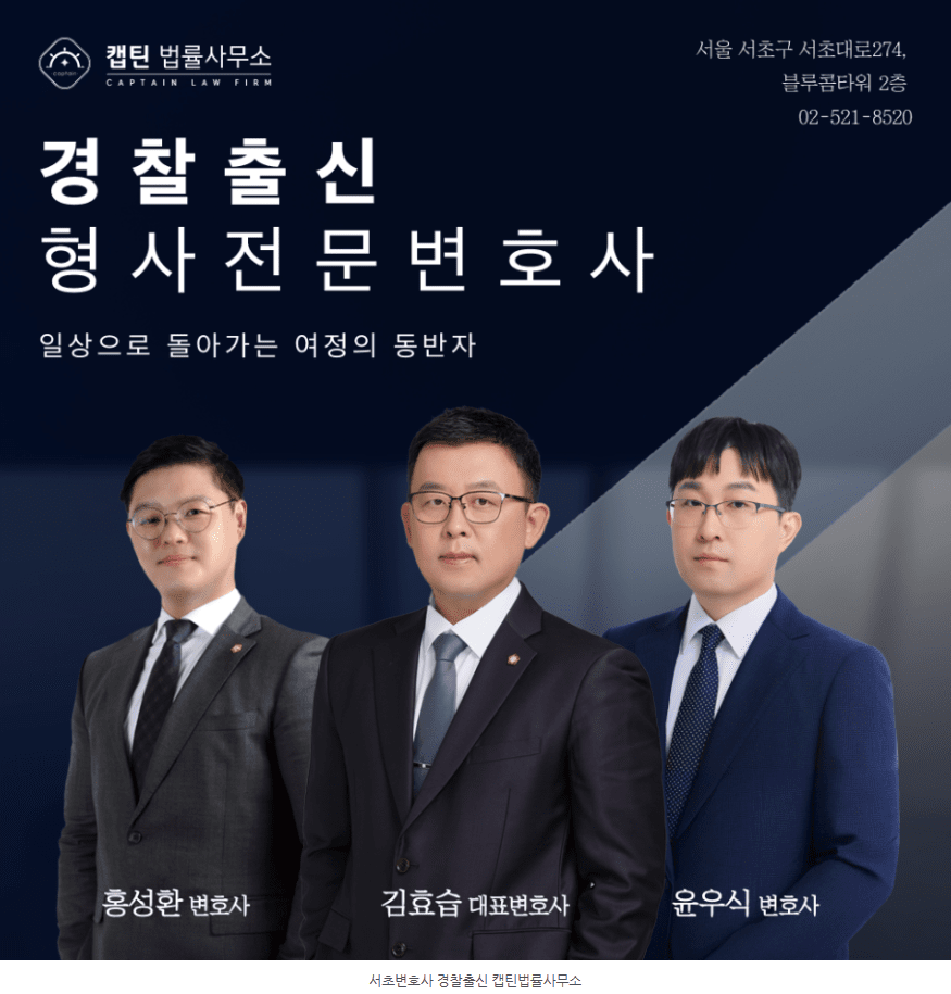 안녕하세요. 경찰출신 서초변호사 캡틴법률사무소입니다.
