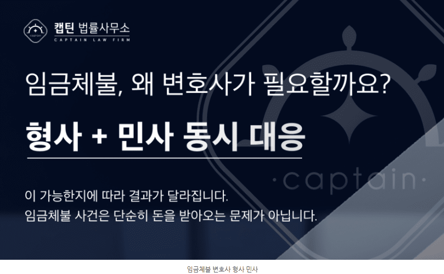 캡틴법률사무소는 즉시 회수 전략으로 진행합니다. 캡틴은 임금체불 사건을 형사·민사·노동청 3단 병행 전략으로 처리합니다.