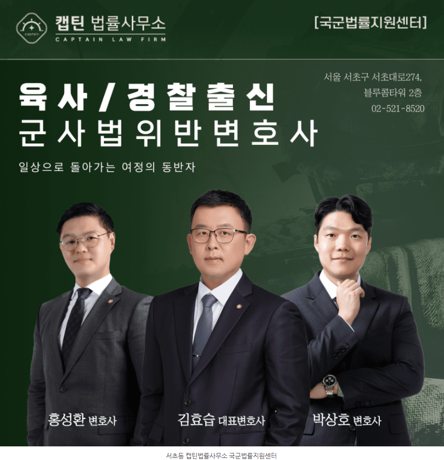 안녕하세요. 캡틴법률사무소 국군법률지원센터입니다.