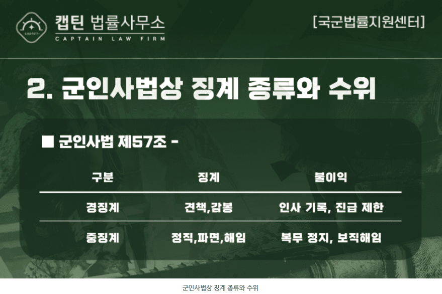 2. 군인사법상 징계 종류와 수위