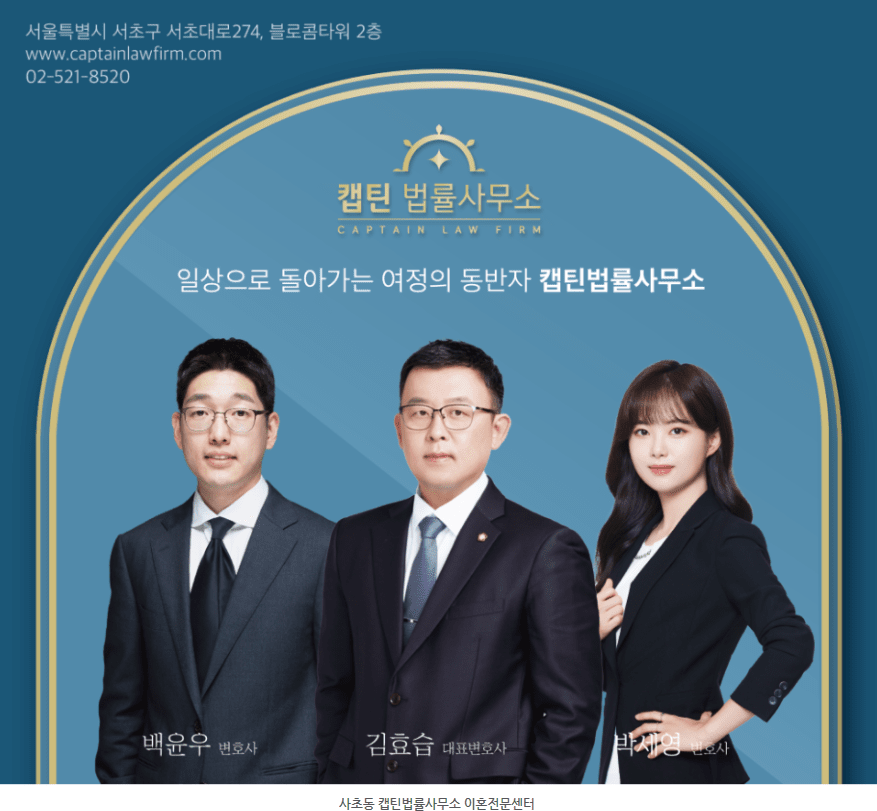 안녕하십니까? 캡틴법률사무소 이혼전문센터입니다.