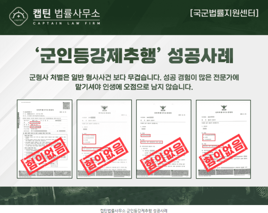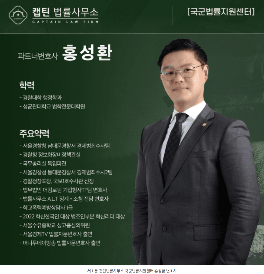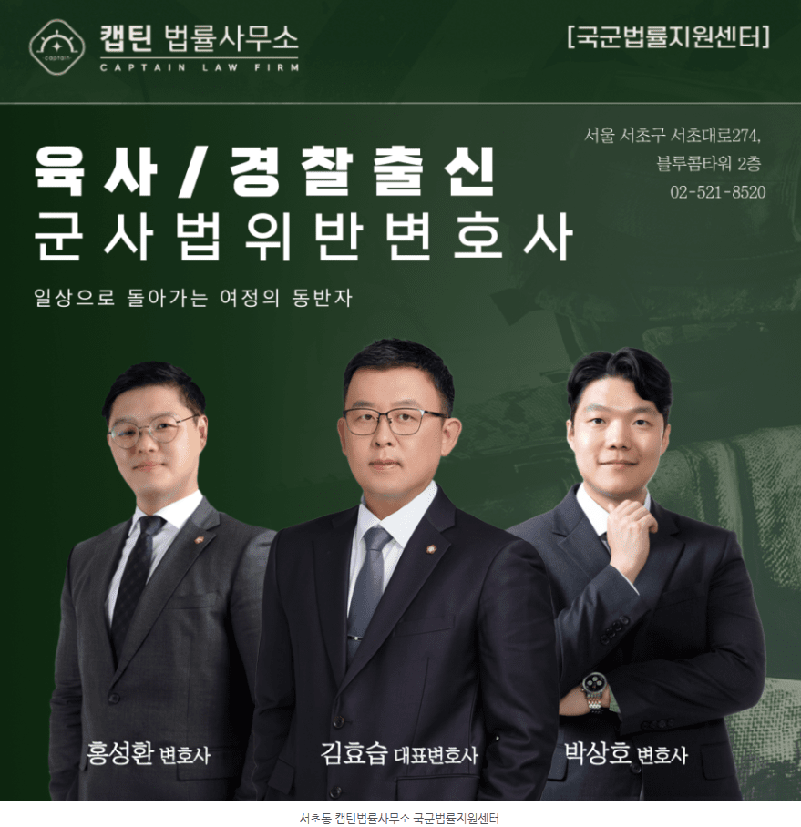 안녕하세요. 캡틴법률사무소 국군법률지원센터입니다.
