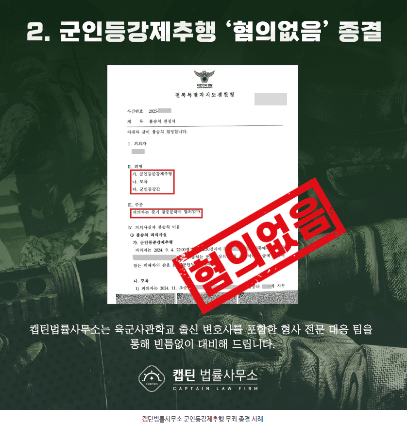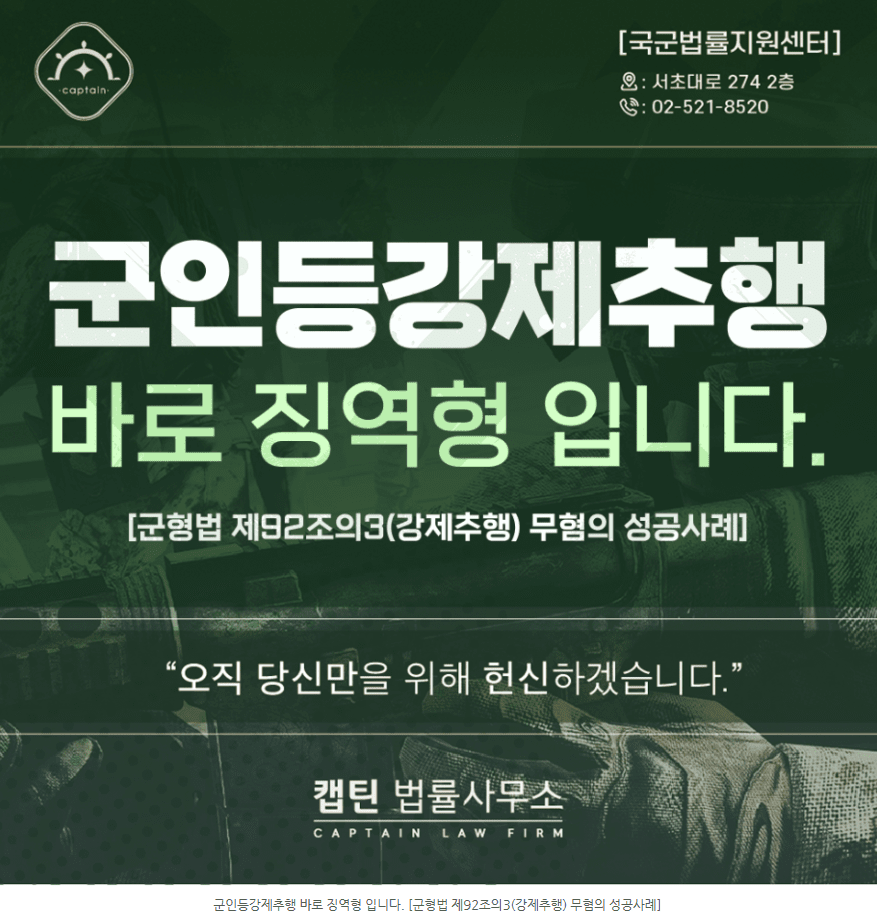 [법인소식] 군인등강제추행 벌금도 없다… 바로 징역형 | 캡틴법률사무소 무죄 무혐의 성공사례