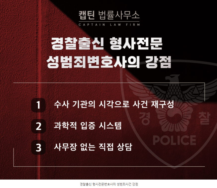 안녕하세요. 서초동 경찰출신 형사전문변호사 캡틴법률사무소 성범죄무고대응센터입니다.