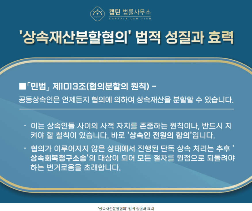 이는 상속인들 사이의 사적 자치를 존중하는 원칙이나, 반드시 지켜야 할 철칙이 있습니다. 바로 '상속인 전원의 합의'입니다.