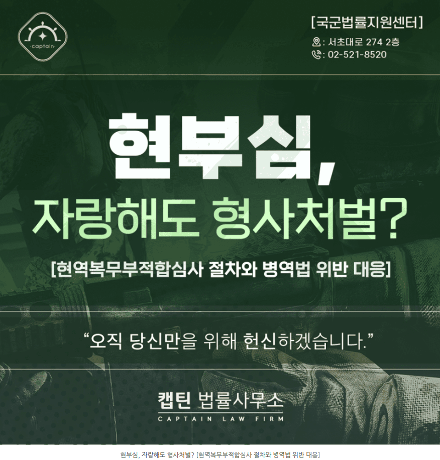 [법인소식] 현부심 자랑해도 형사처벌? 현역복무부적합심사 절차와 병역법 위반 대응