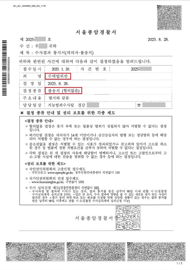 캡틴법률사무소는 국토교통부가 수사의뢰의 근거로 삼은 사실관계 자체는 모두 인정하면서, 세대분리 위장전입 유형의 주택법위반 사건에 축적된 노하우를 바탕으로 관련 증거와 법리적 주장을 통하여 형사입건 조차 되지 않고 입건전조사종결로 사건을 마무리함으로써 의뢰인의 소중한 재산을 지킬 수 있었습니다.