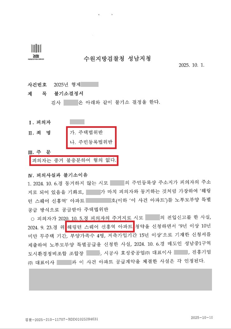 【혐의없음】주택법위반(해링턴스퀘어신흥역)