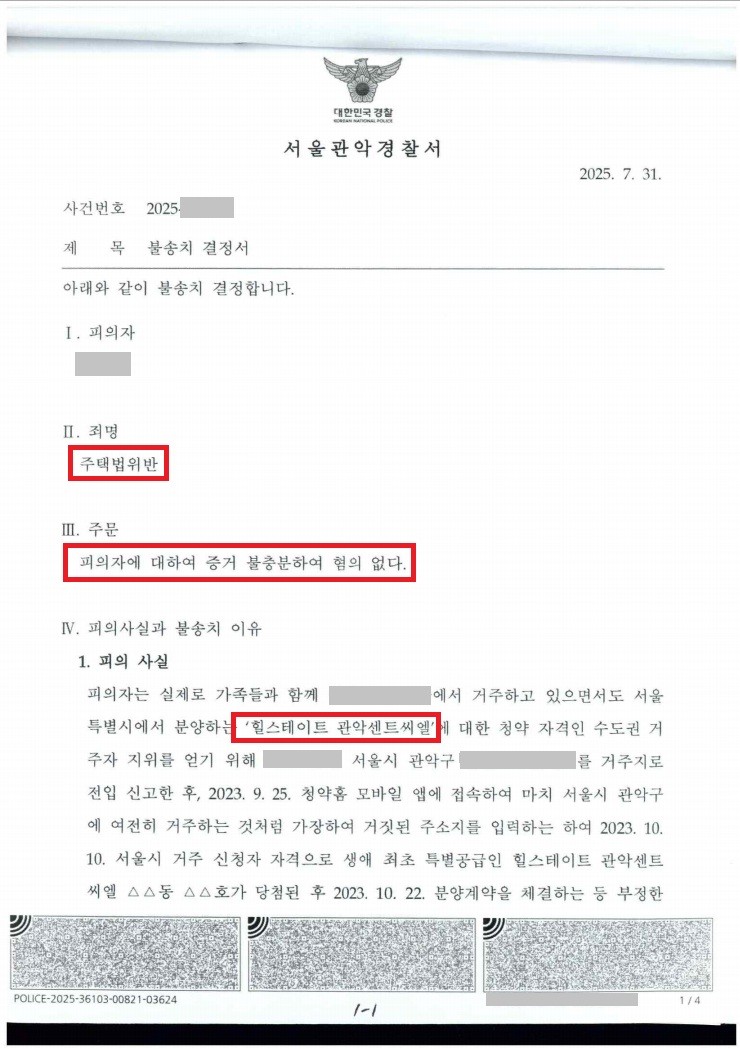 【혐의없음】주택법위반(힐스테이트관악센트씨엘)