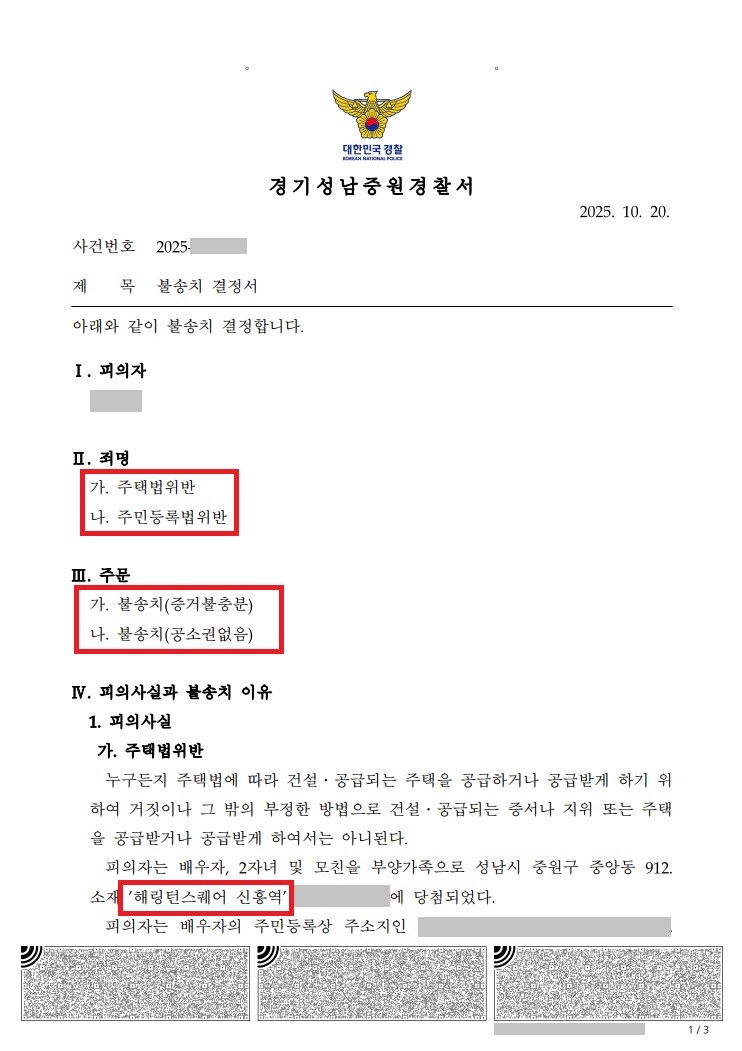 【혐의없음】주택법위반등(해링턴스퀘어신흥역)