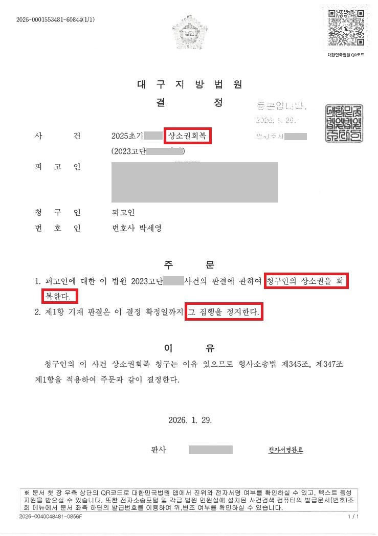 【청구인용】상소권회복청구