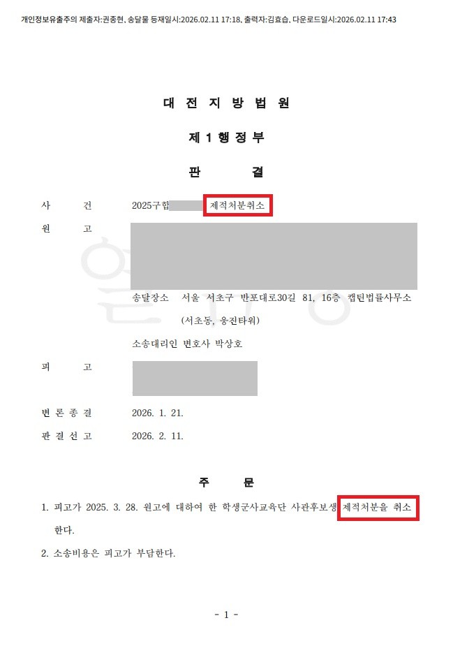 【청구인용】제적처분취소