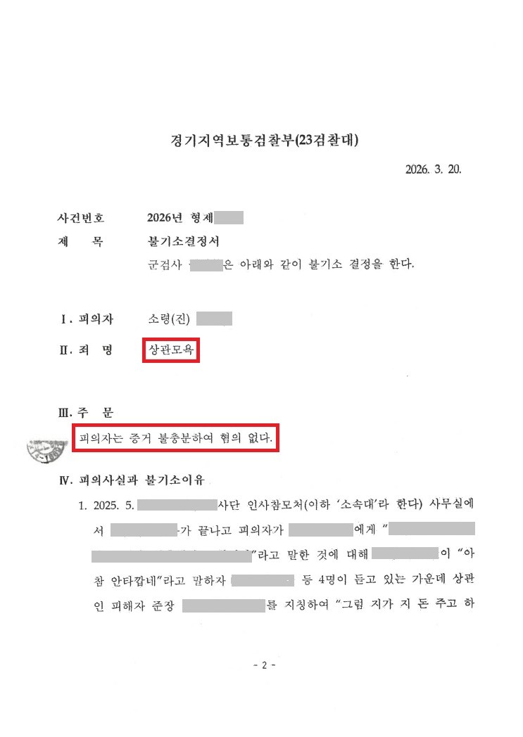 【혐의없음】상관모욕